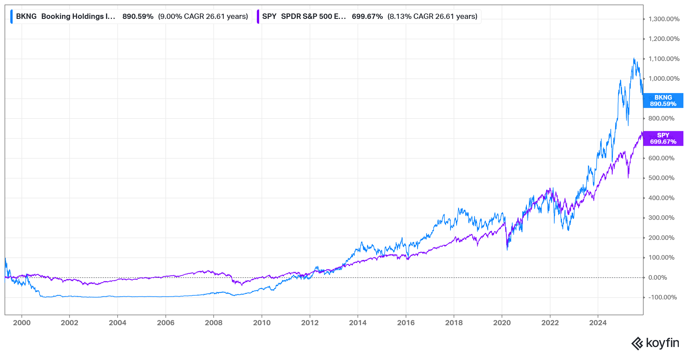 Today, Booking is a ~$155 Billion market cap company and despite IPO-ing during the super hot tech bubble period, Booking still managed to generate a respectable ~9% CAGR over the last two and half decades. And if you’re one of the lucky ones to bottom tick the stock after it crashed, it was almost a 1,000-bagger!
