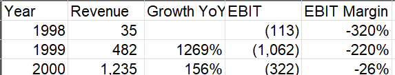 Despite this inherent friction, Priceline.com became a high-flyer of the internet bubble. I mean if you look at numbers for Priceline back then, you would legitimately wonder “friction? what friction?”