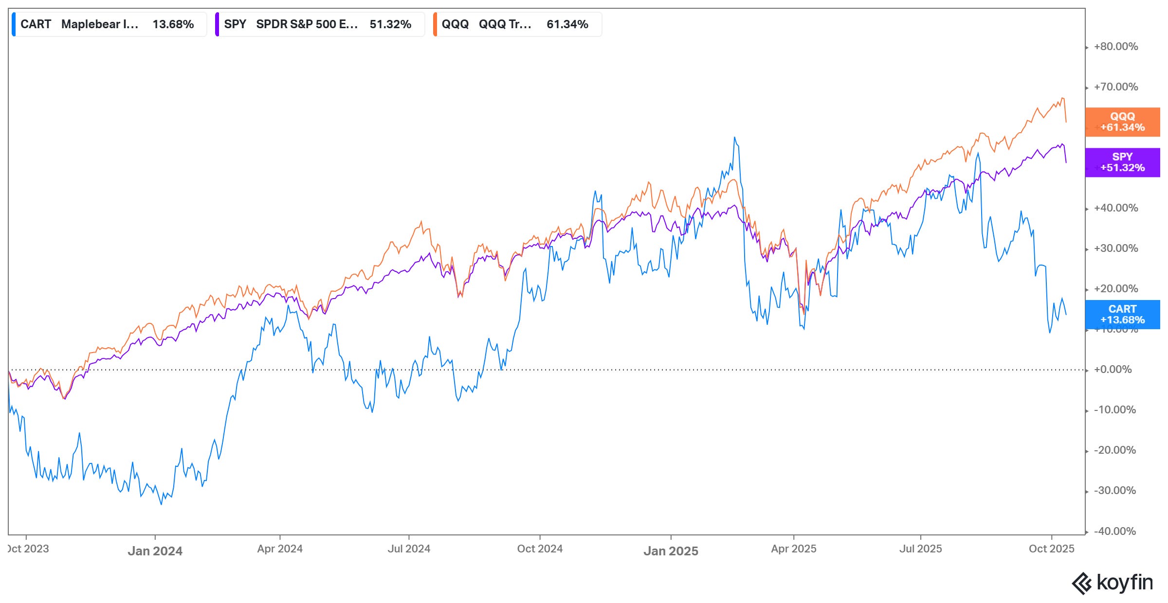Despite coming to IPO at ~70% below its peak valuation, Instacart stock lagged both S&P 500 and QQQ considerably. Instacart’s valuation has been almost flat since 2018! To put this in context, Instacart’s revenue increased by ~16x between 2019 and 2024 and yet its shareholders didn’t make much money during this period. It may be helpful to remember no matter how “clear” the story seems in the short-term, the weight of long-term fundamentals may come for all.