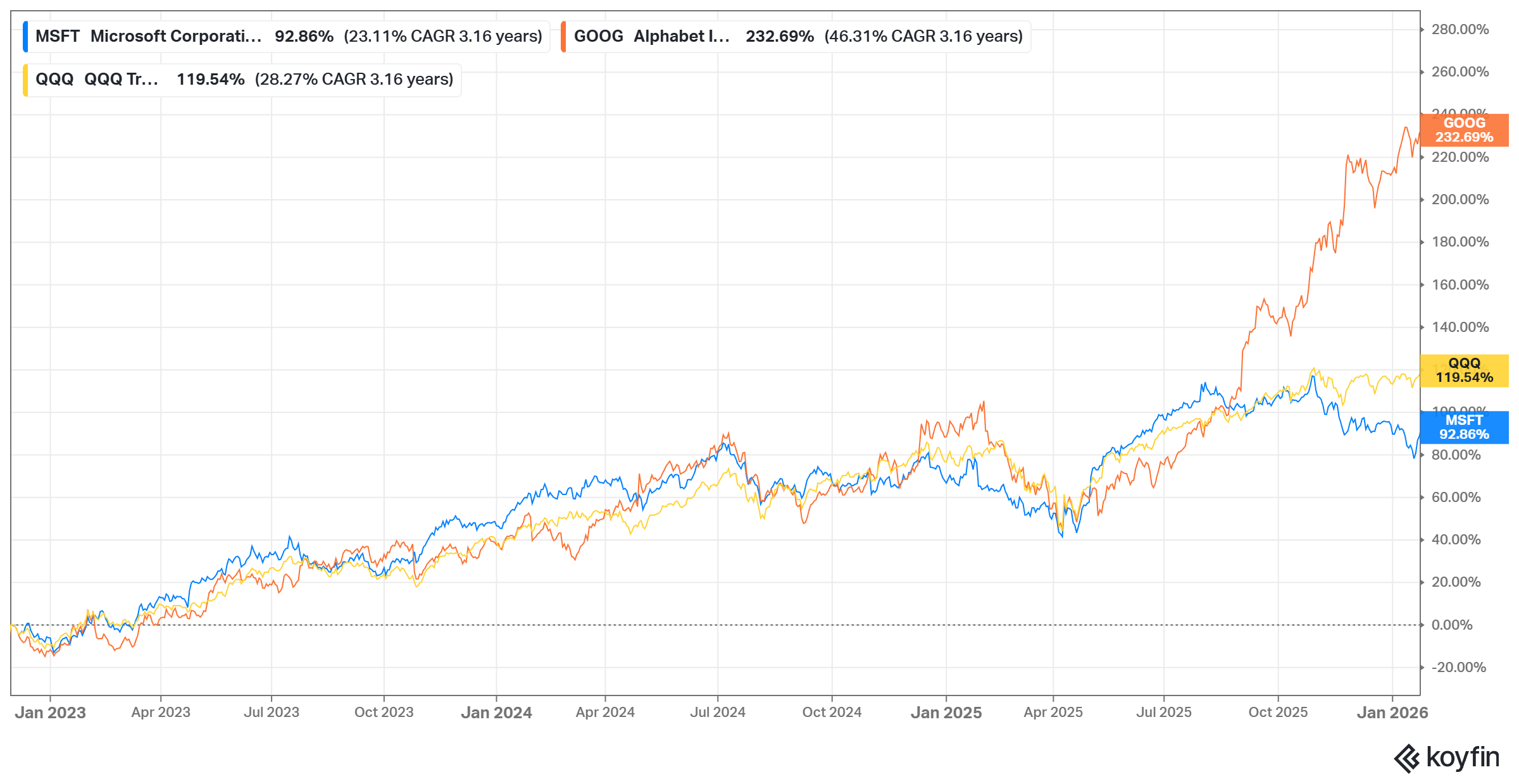 If you need any reminder how challenging active investing is, it can be humbling to know that if you bought Microsoft the day ChatGPT was launched, you would not only underperform QQQ but also underperform Alphabet (the very company the consensus assumed to be the primary “victim” of ChatGPT) by a whopping 140 percentage points in the next three years.