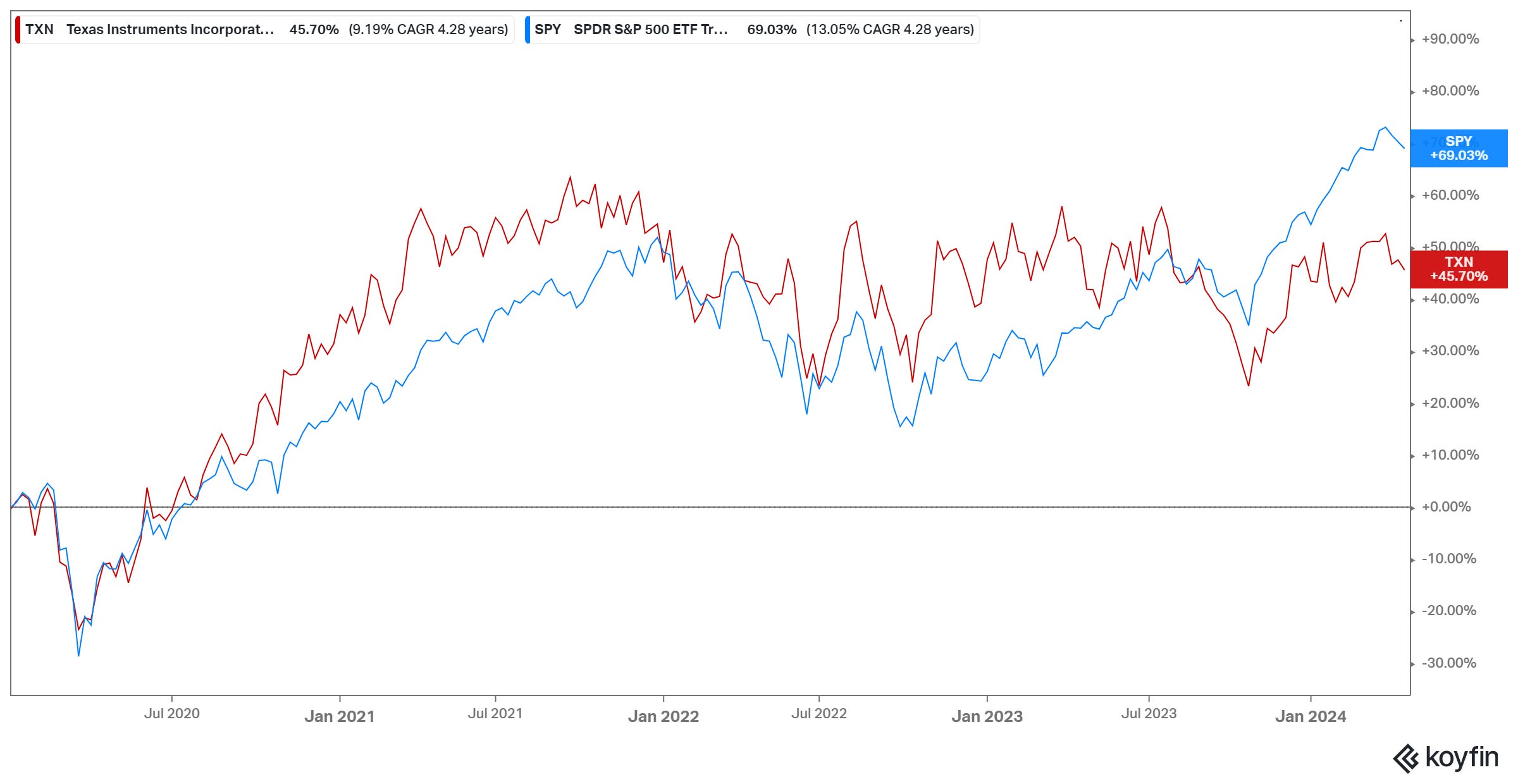 In 2020s so far, TI has underperformed S&P 500. Revenue has been declining YoY for the last six consecutive quarters as the industry is currently going through a cyclical downturn. I reckon this is likely to be an interesting opportunity for long-term investors.