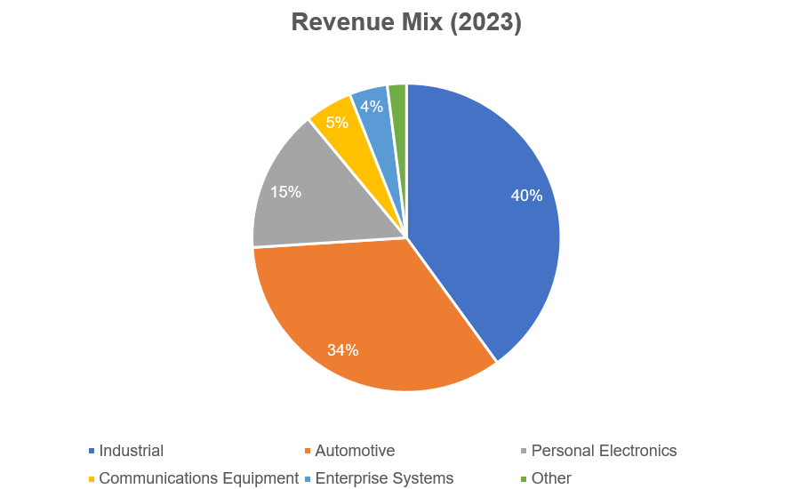 Now, industrials and automotive contributes nearly three-fourth of overall revenue of TI. With ~$20 Bn revenue, TI is the leading analog chips company in the world.