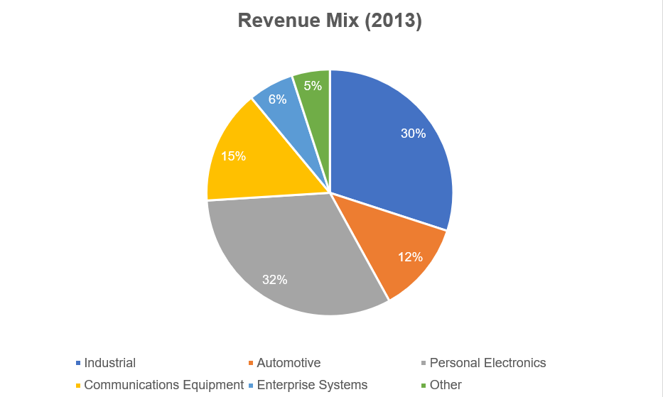 TI was also overly reliant on consumer electronics and given the potential short product cycle and OEMs bargaining power in consumer electronics, it was not the easiest business to navigate for TI. So, TI started plotting to lower its dependence on this industry and shift more to industrials and automotive industry, both industries which tend to have larger product/design cycle and diverse, fragmented customer base. TI ended up divesting Sensata for $3 Bn to Bain in 2006. Sensata later IPO-ed and given its market cap today is only ~$5 Bn, that was clearly a good deal for TI shareholders in hindsight.
